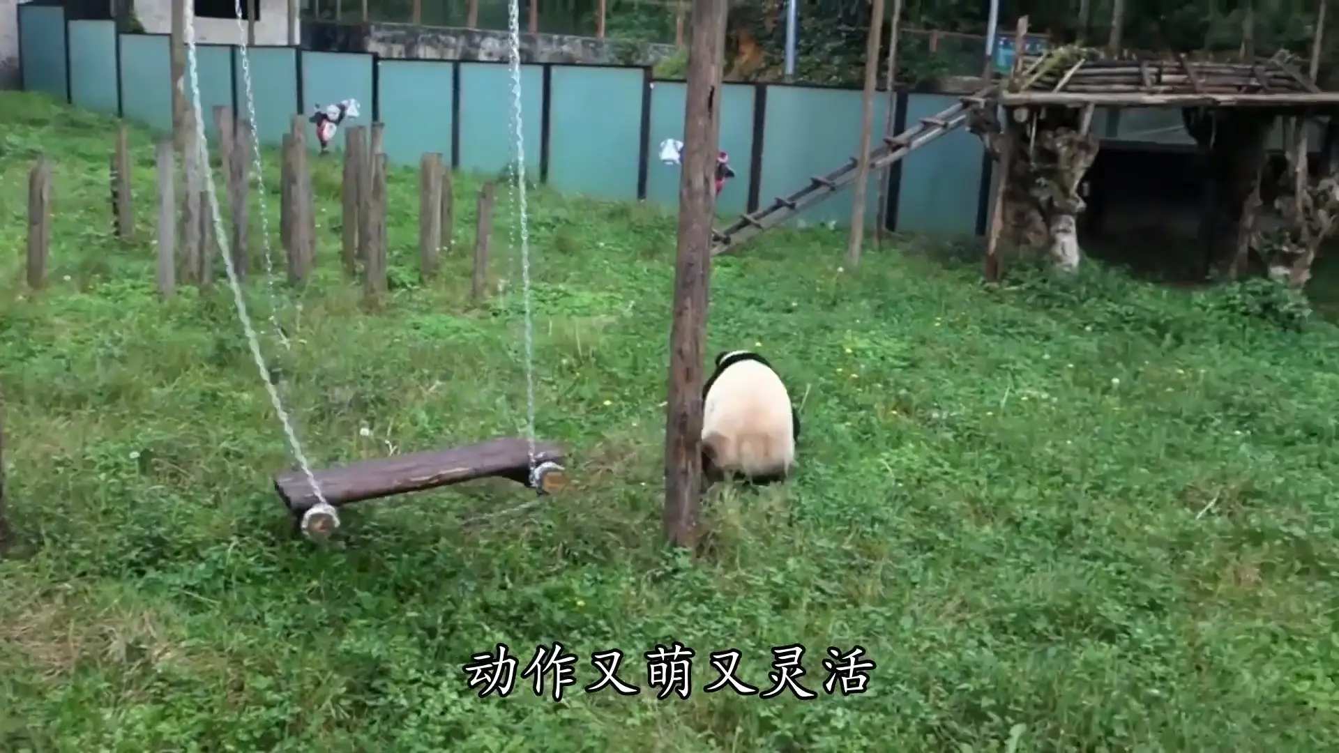没想到玩够了摇椅,它又径直走到旁边的秋千上,爪子紧紧抓住绳索,身子一悠一荡地晃了起来。刚荡了没几下,它回头瞥见围观的游客,像是突然来了兴致,玩得更加起劲儿了。在秋千上,它一会儿顺势倒立,爪子还不忘扒着绳索稳住身形,一会儿又张开腿"劈叉",动作又萌又灵活,引得游客阵阵惊呼。