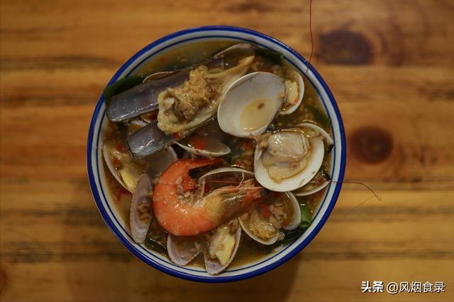 再来碗海鲜面,汤头是用海鱼熬的,鲜得让人把舌头都想吞下去。