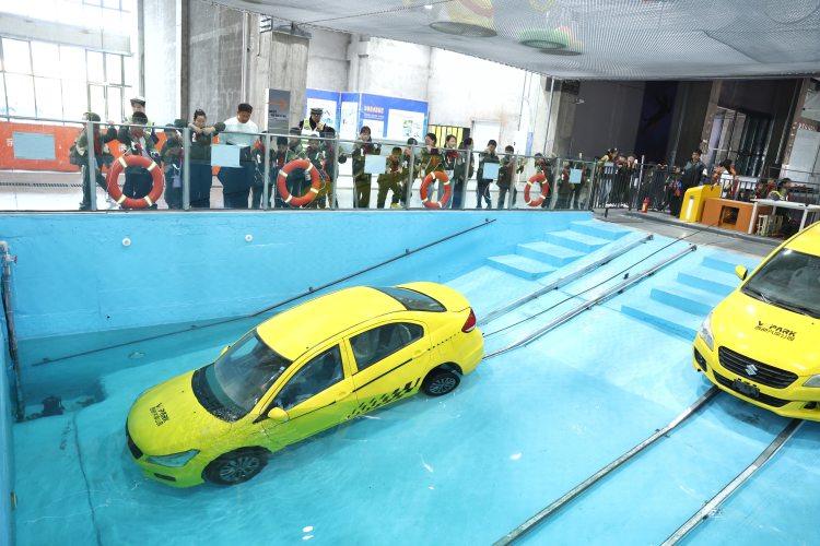 据了解,作为重庆市交通安全宣传教育实训基地的西部汽摩公园,设置了“真车落水自救体验”,模拟车辆坠入深水场景。符合健康要求的市民可以进入车内,穿上防水服,在专业人员指导下,学习和体验破窗逃生、后备箱逃生、正确使用安全锤、利用车内物品逃生等技能,体验车辆在落水时水流涌入座舱时的真实感受。