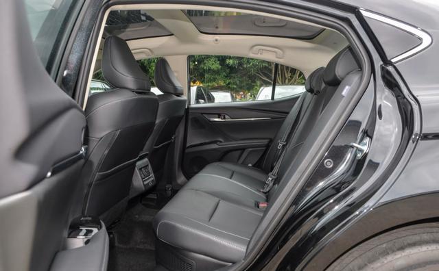 该车的车身尺寸为4915mm×1840mm×1450mm,轴距为2825mm,在B级车中处于中游水平。车内空间延续了凯美瑞的传统优势,身高180cm的成年男性坐进后排,仍有较宽松的活动空间,头部还有大约一拳的空间,满载五人不会觉得拥挤,也没有压抑的感觉。但缺点也较为明显,座椅靠背支撑性不够,且该版本没有后排座椅调节功能,所以坐久了也会有酸困乏力的不适感。