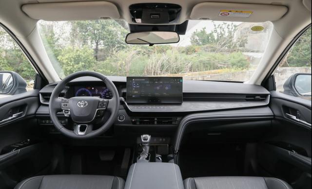 内饰方面,延续了凯美瑞的“实用为主”,中控台整体用料以合成皮革、普通塑料为主,整体质感欠佳。12.3英寸液晶仪表盘、12.3英寸中控屏、三幅式多功能方向盘,组成一套简洁基础的车机系统。尊贵版搭载Navinfo卫星导航地图,支持导航路况信息展示,且支持CarPlay、Carlink和HUAWEI HiCar三种手机互联映射,操作下来没有明显的“豪华感”,更多呈现的是一种朴实的家用风格。