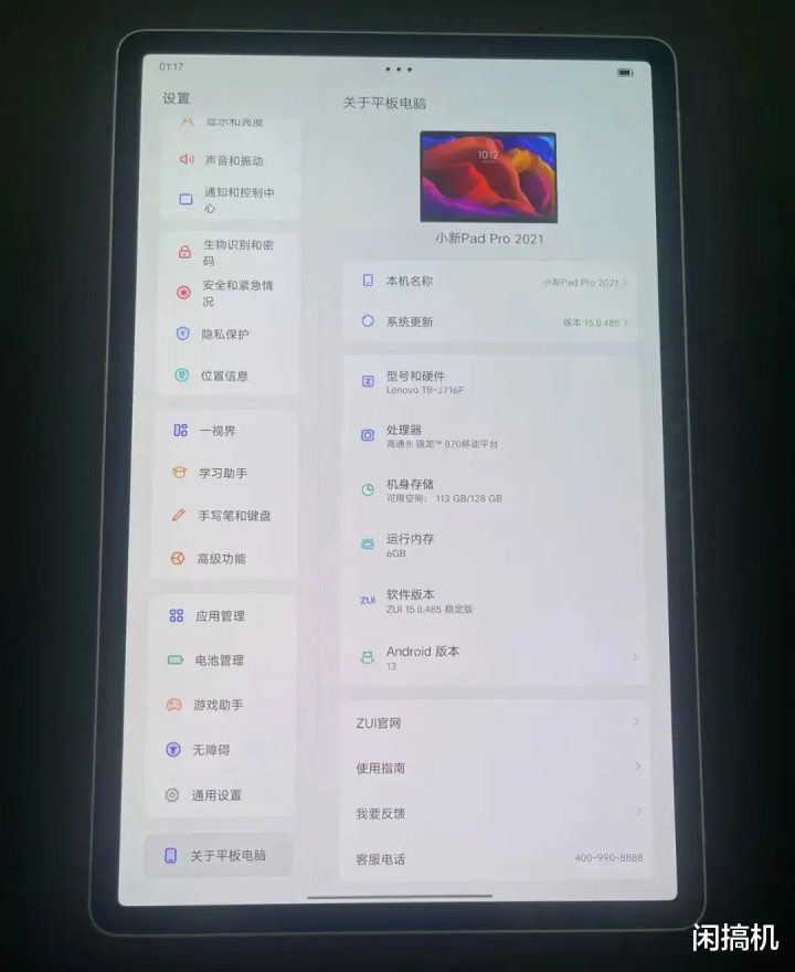 它是当年性价比最高的平板之一,搭载了“一代神U”骁龙870处理器,常见存储组合是6G+128G。预装基于安卓11的ZUI 12.5系统,后面一路可升到基于安卓13的ZUI 15系统。但要注意,小新平板的细分版本很多,同款型号还有骁龙730G和骁龙662版本。如果卖家没标注处理器型号,一定要单独问清楚,避免买回来吃瘪。