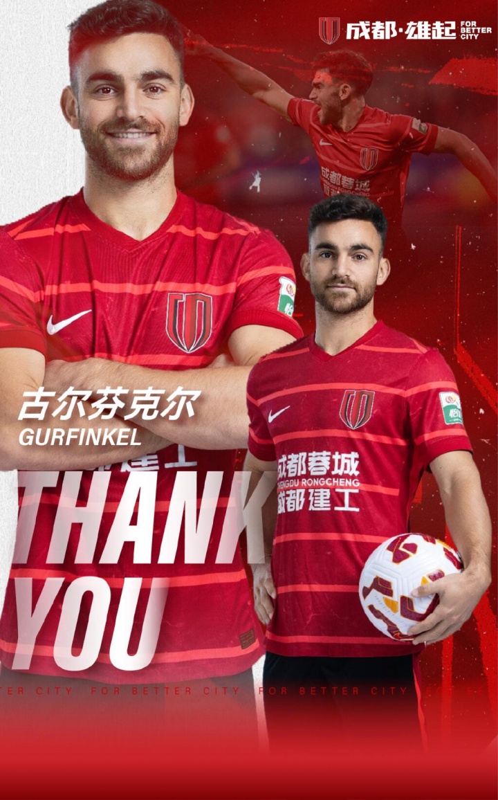 经与球员本人友好协商并达成一致,古尔芬克尔与成都蓉城足球俱乐部的合同到期不再续约。