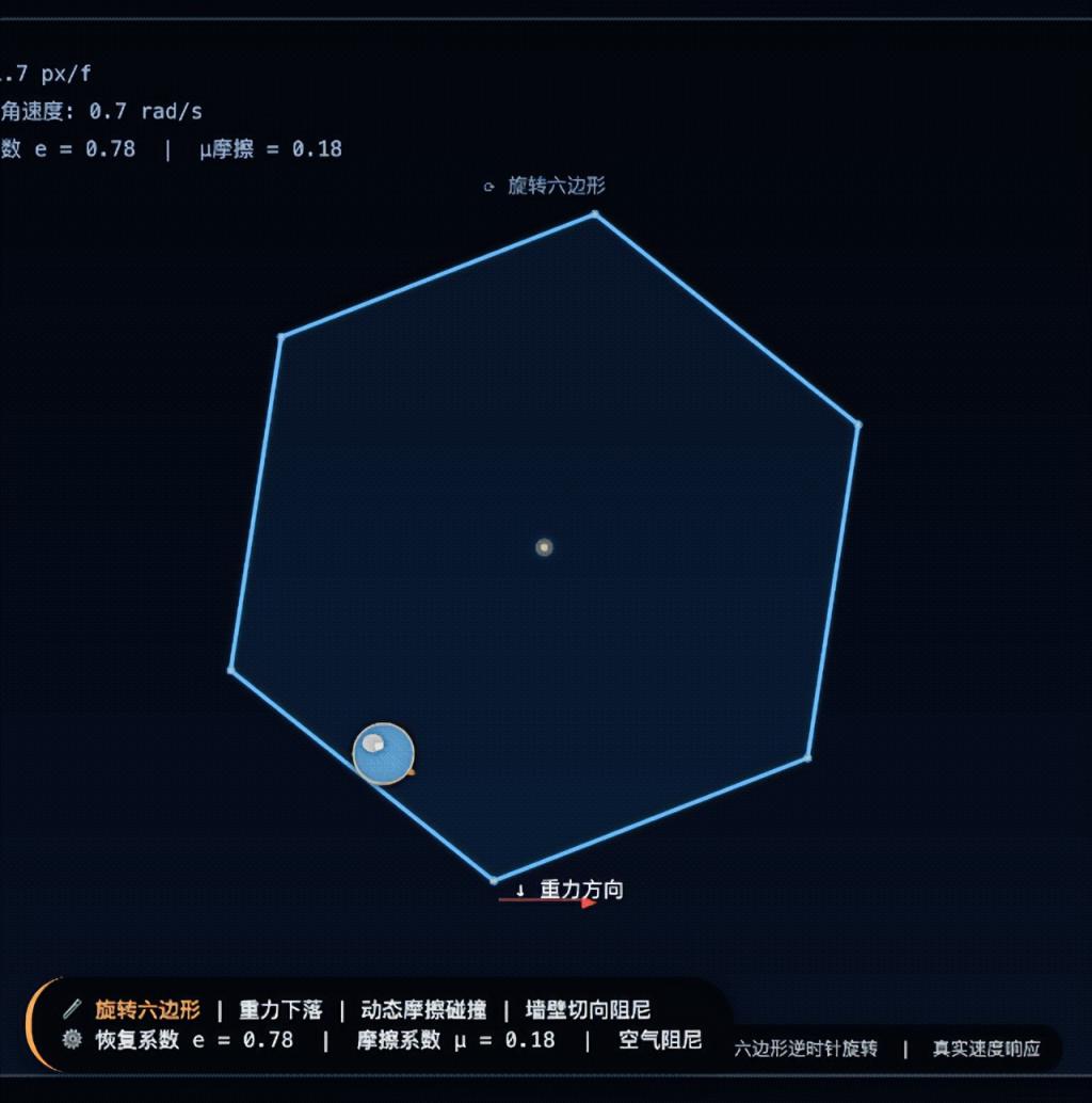 很多网友第一时间也做了测试比较,测试者让两种模式分别编写一个模拟球在旋转六边形内弹跳的 p5.js 程序,要求球体运动受重力和摩擦力影响。结果显示,专家模式给出的程序运行结果更符合物理直觉,落点精准,弹跳轨迹真实;而快速模式的结果则明显逊色不少。
