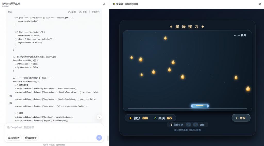 若是让它生成一个简单游戏画面,两者出来的框架及画面效果差异不大,反而专家模式的游戏体验难度较为不合理。